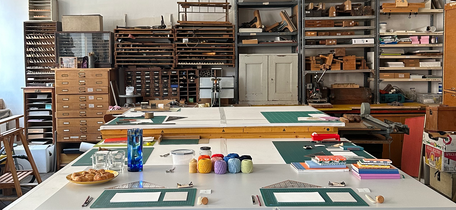 Der Werkstättenbereich verfügt über 12 Werkstätten, sechs Ateliers und drei Gastateliers und bietet Raum für vielfältige handwerkliche und künstlerische Produktionen aus den folgenden Bereichen: