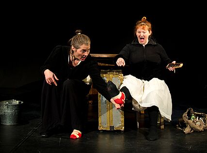 Fassungslos sitzen ihre Stiefschwestern vor den Trümmern ihrer Geschichte.
