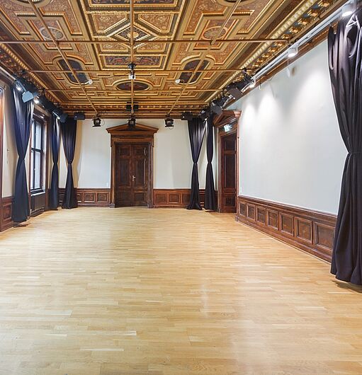 The main hall provides the ideal atmosphere and infrastructure for events in the fields of theatre, dance, and music as well as for public readings or company parties.