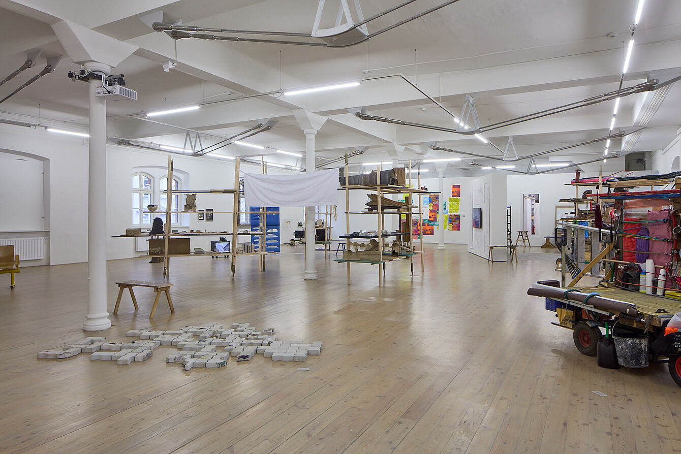 Aber es ist die eine Sache, Kunst als Mittel zur Repräsentation und Illustration von Prozessen zu nutzen, und eine andere, Kunstpraktiken selbst als inklusive Handlungsweise zu etablieren, als Instrument der Fürsorge und Form kollaborativer Selbstorganisation. Gemeinschaftliches Tun und Handeln hat in der jüngsten Vergangenheit auch künstlerische und kuratorische Praktiken erfasst. Nicht zuletzt in Reaktion auf die Vereinzelungsmechanismen des Kunstmarktes oder auf die zunehmende Akademisierung der Kunst, haben Kunstschaffende erkannt, dass kollaboratives und solidarisches Handeln förderlich oder sogar unerlässlich sind. Der aus der Politischen Ökonomie und Gesellschaftstheorie entlehnte Begriff Commoning leitet sich von Commons, also Gemeingut, ab und legt den Fokus auf Praktiken und Handlungsfelder; er bezeichnet selbstorganisiertes und gemeinsames Produzieren, Verwalten, Sorgen und Nutzen. Dabei bringen alle Beteiligten ihre individuellen Fähigkeiten ein und bestimmen kollektiv über Art und Umgang mit Ressourcen und Produkten. Die feministische Politikwissenschaftlerin Silvia Federici versteht diese Praktiken als Möglichkeit zur „Errichtung autonomer Räume, von denen aus der Einfluss des Kapitalismus auf unser Leben untergraben werden kann.“2 Mit ihrem Slogan „no commons without community“ betont sie, dass Gemeingüter, wie Räume oder Ressourcen, nicht einfach existieren, sondern durch aktive, kollektive Verantwortung, Entscheidungen und soziale Beziehungen aktiviert werden müssen.
