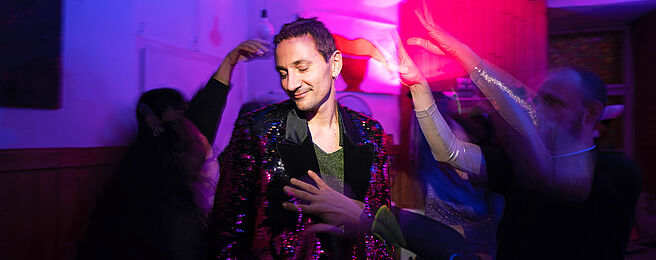 PARTY! feiert die Feier und zelebriert die Kraft des Tanzes als Katharsis in Momenten globaler und privater Krisen. Die Solo-Performance von Luigi Guerrieri ist eine Suche nach Leichtigkeit in schweren Zeiten, eine Reflexion über das Feiern als Form der Resilienz und gleichzeitig eine Hinterfragung der Resilienz selbst.