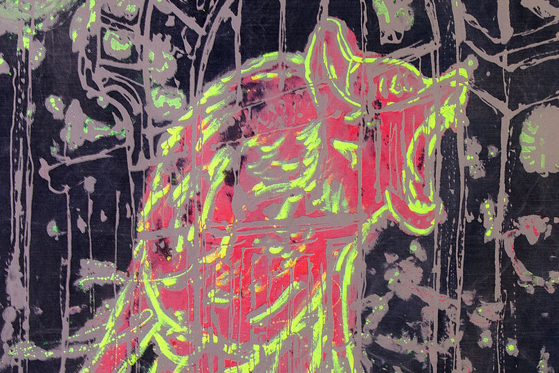Olga Paštékovás malerische Praxis bewegt sich an der Schnittstelle von Ökologie, Sozialem und Mythologie. Über das Tafelbild hinaus entwickelt Paštéková ihre Werke zu raumbezogenen Installationen, in denen Malerei, Licht und architektonischer Kontext in ein spannungsvolles Verhältnis treten. Die KUNSTZELLE wird zum leuchtenden Bildraum, der die Betrachter*innen physisch und atmosphärisch einbindet.