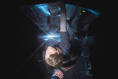 In violet glace the ace stands for asexual. Flóra Boros choreographs a space that is intentionally ambiguous — a room where sensuality does not demand explanation or erotic readability. This solo unfolds like a slow-burn romance and invites the audience to experience a gaze that lingers without devouring.