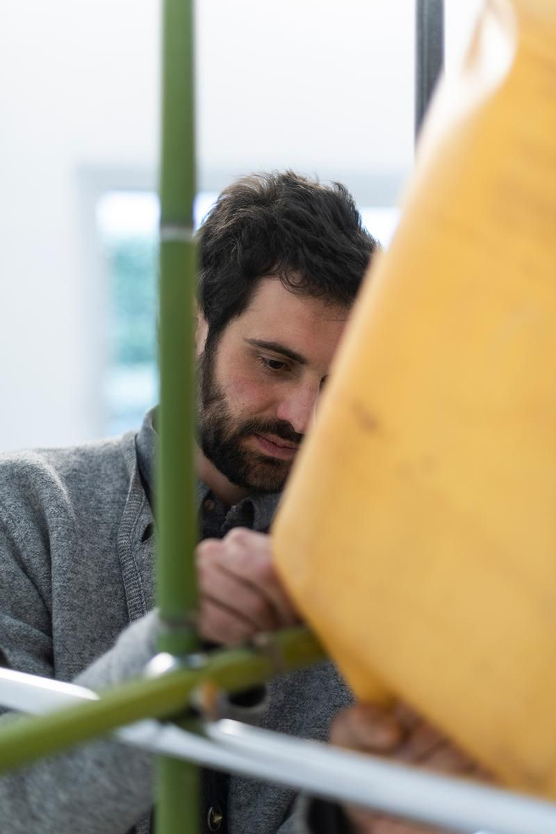 Tobias Tavella, born February 8, 1990, in Brixen, Italy, returned to La Val in the Val Badia valley after completing his education. Presently based in Bolzano and the Val Badia, he is active both in the arts and in agriculture. He studied design at the Berlin University of the Arts (UDK) from 2010 to 2015 and honed his craftsmanship in the wood workshop of Studio Olafur Eliasson between 2014 and 2017. His social engagement is also evident in his experimental music workshops at schools as part of the “Music Van” project organised by the Bolzano-based Kids Culture Club. Tavella’s works were most recently presented in 2024 at the Renaissance exhibition at the Museion Museum of Modern and Contemporary Art Bolzano as well as at the Biennale Gherdëina in Val Gardena.