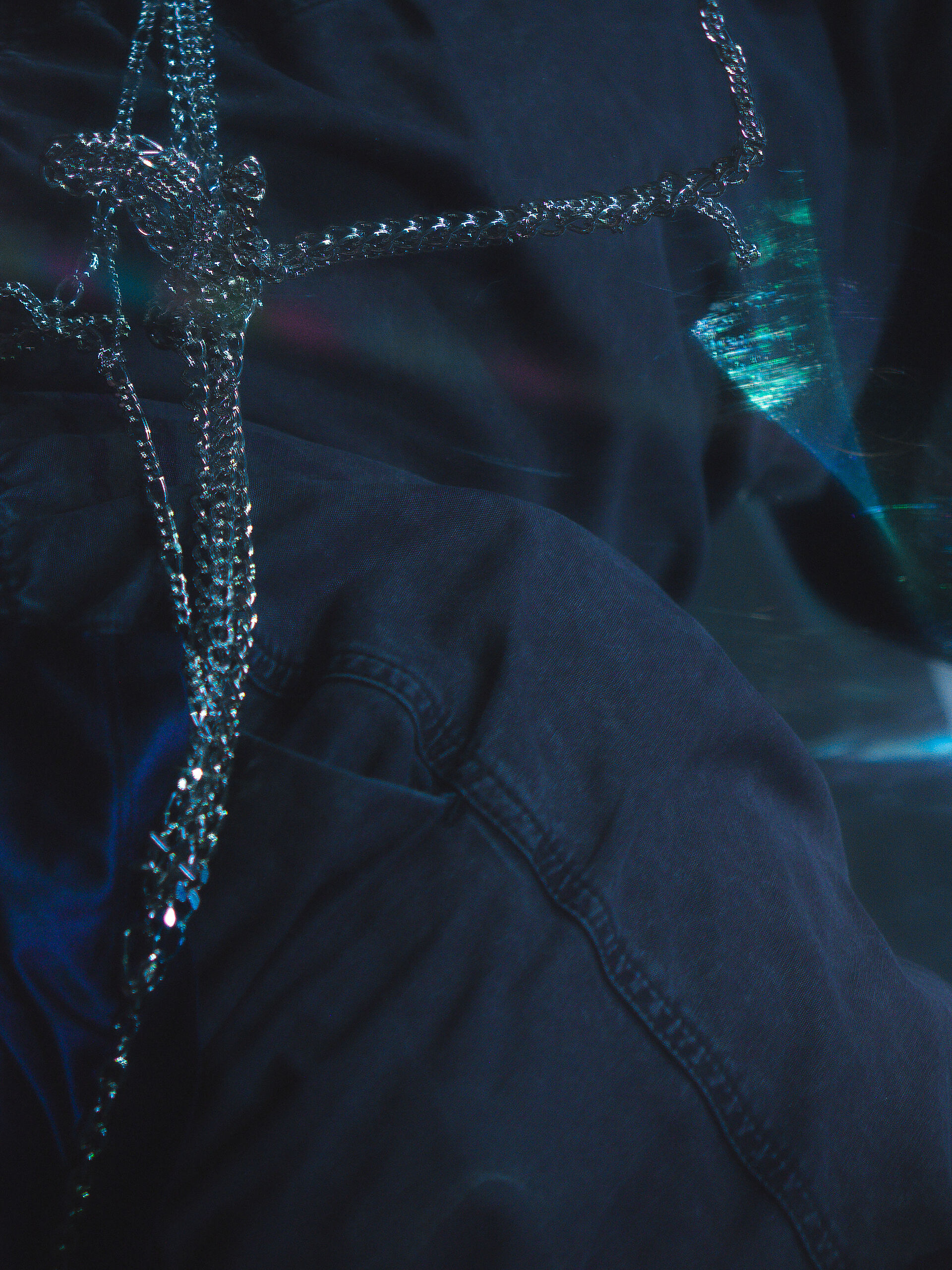 Musician Rozi Mákó whispers electronic soundscapes into being: she sighs glossy synths and breathes dancey beats, from still  gasps to liberated outbursts. Meanwhile, the body shimmers, edges blur and hierarchies of sight dissolve under Yasemin Duru’s spotlights. Bathed in fifty shades of purple-grey and dripping with iridescent textures, the stage, glittered by Sara Sternat, starts scintillating. Body parts, revealed and concealed by translucent fabrics, oscillate between intimacy and alienation.