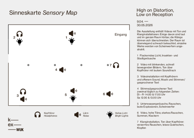 Zwischen Lautem und Leisem, Wahrnehmbarem und Verdrängtem widmet sich die Gruppenausstellung High on Distortion, Low on Reception den Klängen unserer Gegenwart – überlagert von Verzerrung, verloren in der Resonanz. Im Mittelpunkt steht dabei ihre Form als Kommunikation, Empfindung und kulturelle Erfahrung.