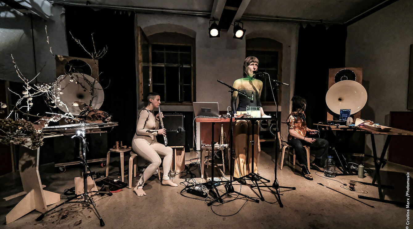 Merche Blasco verstärkt mit eigens entwickelten Mikrofonen elektromagnetische Aktivitäten und organische Materialien. Marina Cyrino spielt "erweiterte Flöten" –bestehend aus zerlegten Teilen und unterschiedlichen Objekten – sowie das Klangobjekt "Urutau", das getrocknete Blätter und Zweige rhythmisch erklingen lässt. Ute Wassermannerweitert ihre Stimme mit Vogelrufen und einem Aquarium, in dem Unterwasserschwingungen zu einer imaginären Klanglandschaft transformiert werden.