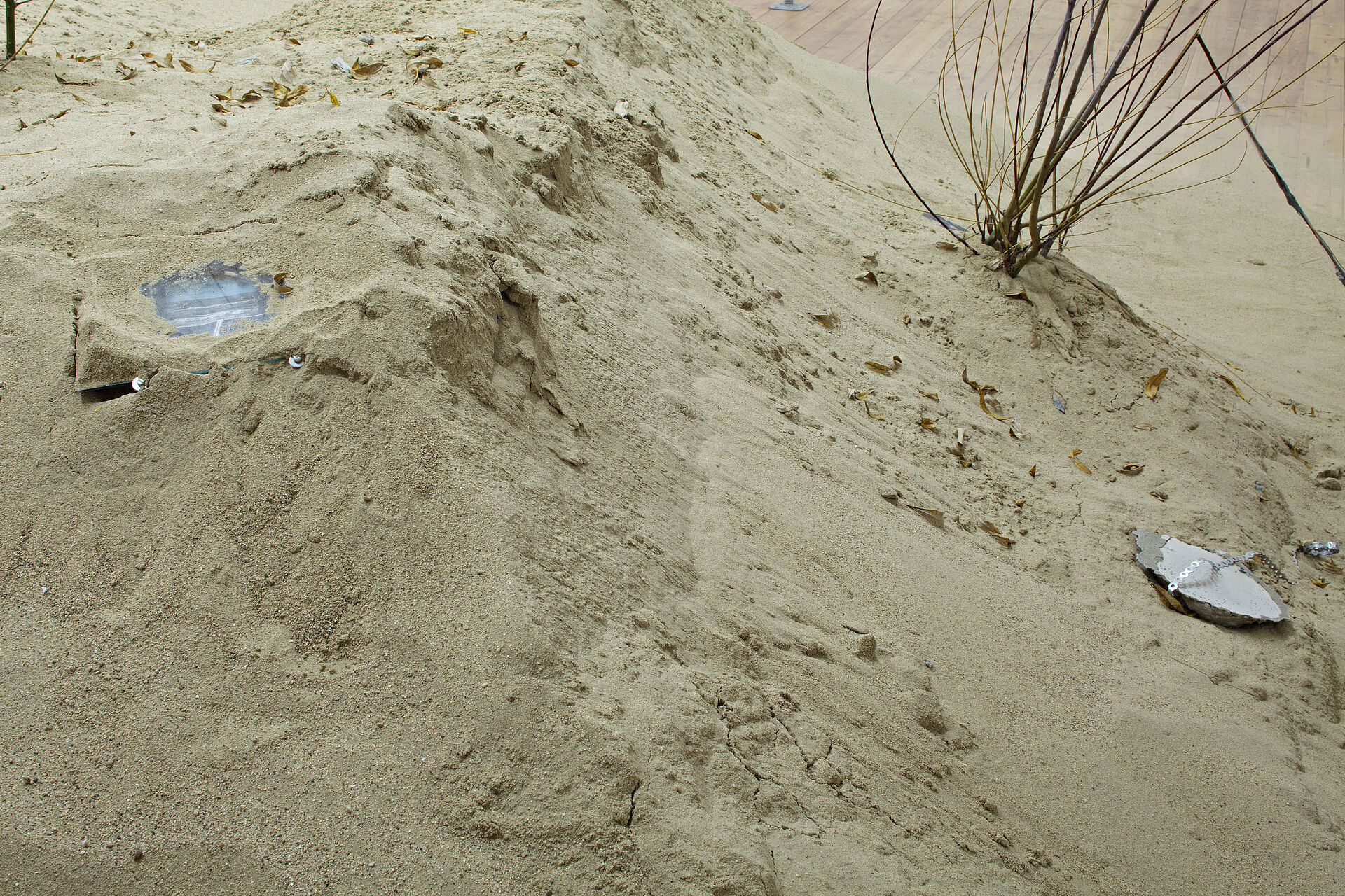 Seine Installation „wo die kätzschen wachsen“ („where the cats are growing“), eine große Sandlandschft mit Weidenkätzchenbüschen, Fotografien und verschiedenen Objekten ist eine Collage aus Erinnerungen des Künstlers – Verlorenheit zwischen Meer und Wäldern, eine Landschaft zum Versteckspielen.