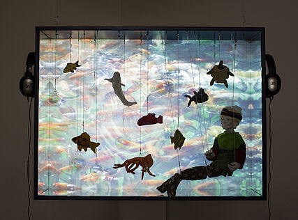In der KEX zeigt Lisa Meixner ihre Arbeit „Unterwasser“ eine Videoinstallation über den babylonischen Mythos der Meeresgöttin Tiamat, sowie die Assemblage “rhein I”, eine Arbeit über das ‚Fließen’, den ‚Flow’, in der geschichtliche und mythologische Erzählungen der Flüsse Rhein und Jangtsekiang verbunden werden.