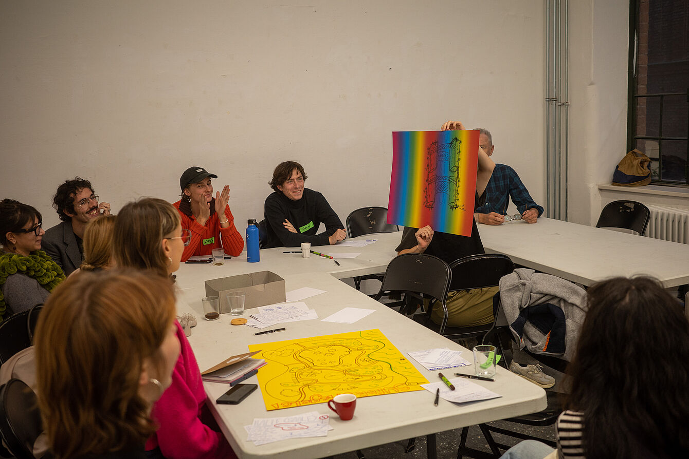 Natalia: Zukunft entsteht immer gemeinsam. Deshalb macht es Sinn, mit anderen darüber zu sprechen, ihre Vorstellungen zu hören und sie zu visualisieren – so wird der Prozess zur Forschung. Durch unsere Arbeit sind wir viel unterwegs und führen den Dialog über die Zukunft oft auch außerhalb unserer eigenen Bubble. Je nachdem, wo ein Workshop stattfindet und welche Gruppe oder Community daran teilnimmt, unterscheiden sich die Ergebnisse. Das macht sie vielfältig und die Zukunft gewinnt an Volumen. Im Urbanize! -Workshop haben wir die Teilnehmenden gebeten, sich speziell mit ihren eigenen Wohnvierteln auseinanderzusetzen. So können wir die Zukunft sehr konkret und lokal betrachten. Die persönlichen Beiträge machen das abstrakte Konzept der Zukunft greifbarer.