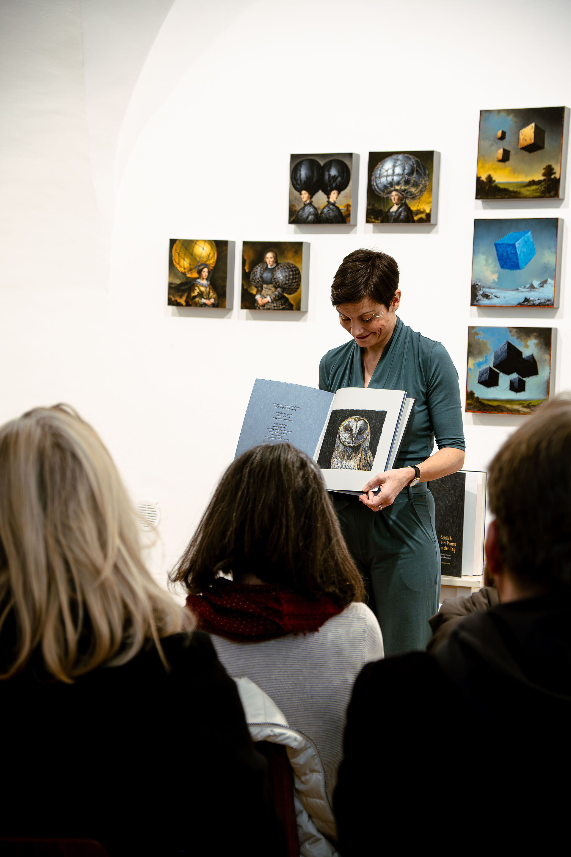 Text: Lena Raubaum, geboren 1984 in Wien, schreibt als Autorin Gereimtes und Ungereimtes für Kleine, Große und alle dazwischen. Sie ist ausgebildete Schauspielerin, Sprecherin, Yogalehrerin und Nuad-Praktikerin. Vielleicht macht sie eines Tages noch den LKW-Führerschein. In ihren Lesungen und Lese-Performances schafft sie stets eine besondere Form der Begegnung mit ihrem Publikum – durch Ausdruckskraft, Herzlichkeit und gemeinsamer Freude an dem, was Worte und Bilder alles können. Für ihr literarisches Schaffen wurde sie bereits mehrfach ausgezeichnet, u. a. dem Österreichischen Kinder- und Jugendbuchpreis (2022 und 2026) sowie die mehrmalige Nominierung zum Astrid Lindgren Memorial Award. lenaraubaum.com