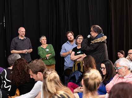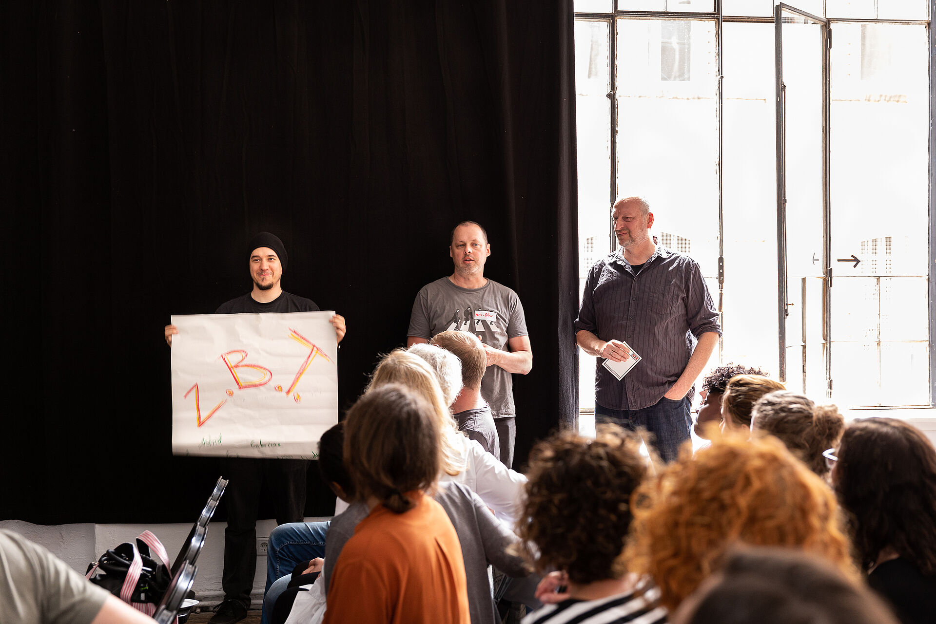 Danach gab es einen Rückblick von Geschäftsleiter Christoph Trauner auf aktuelle Entwicklungen seit dem letzten Mitarbeiter_innen-Tag. Dazu zählten etwa die Spendenaktion WUK retten. Jetzt!, die Beendigung des Pilotprojekts Zwischenzeit und der Beginn des Projekts WUK construct, der Beschluss der Barrierefrei-Standards oder die Übersiedelung von spacelab_kreativ ins Sonnwendviertel.