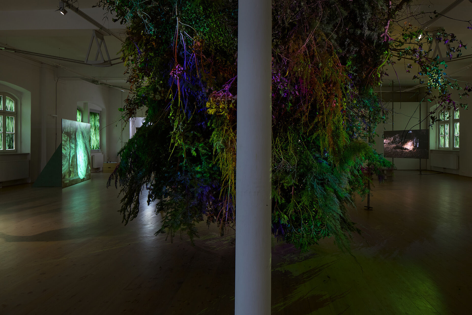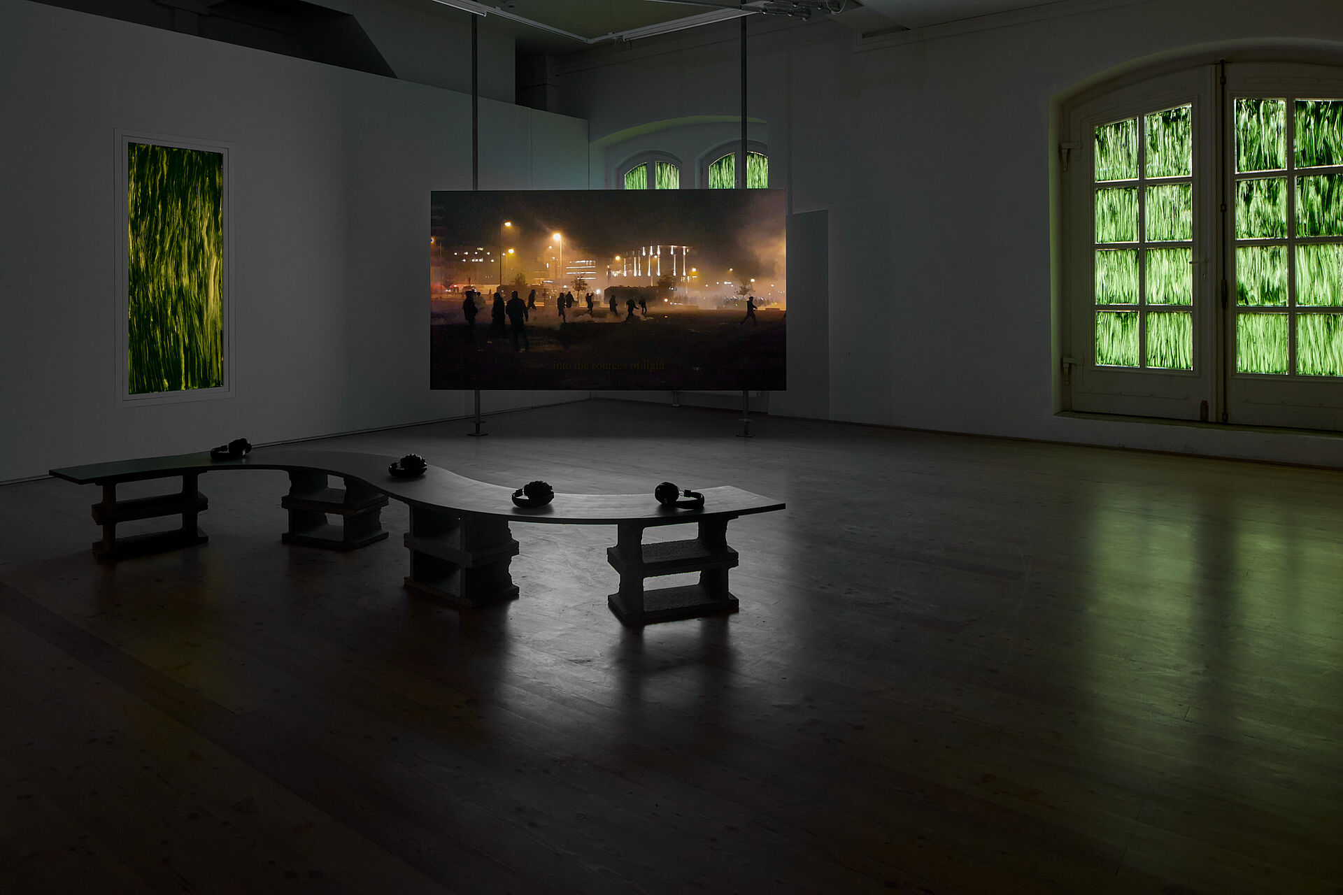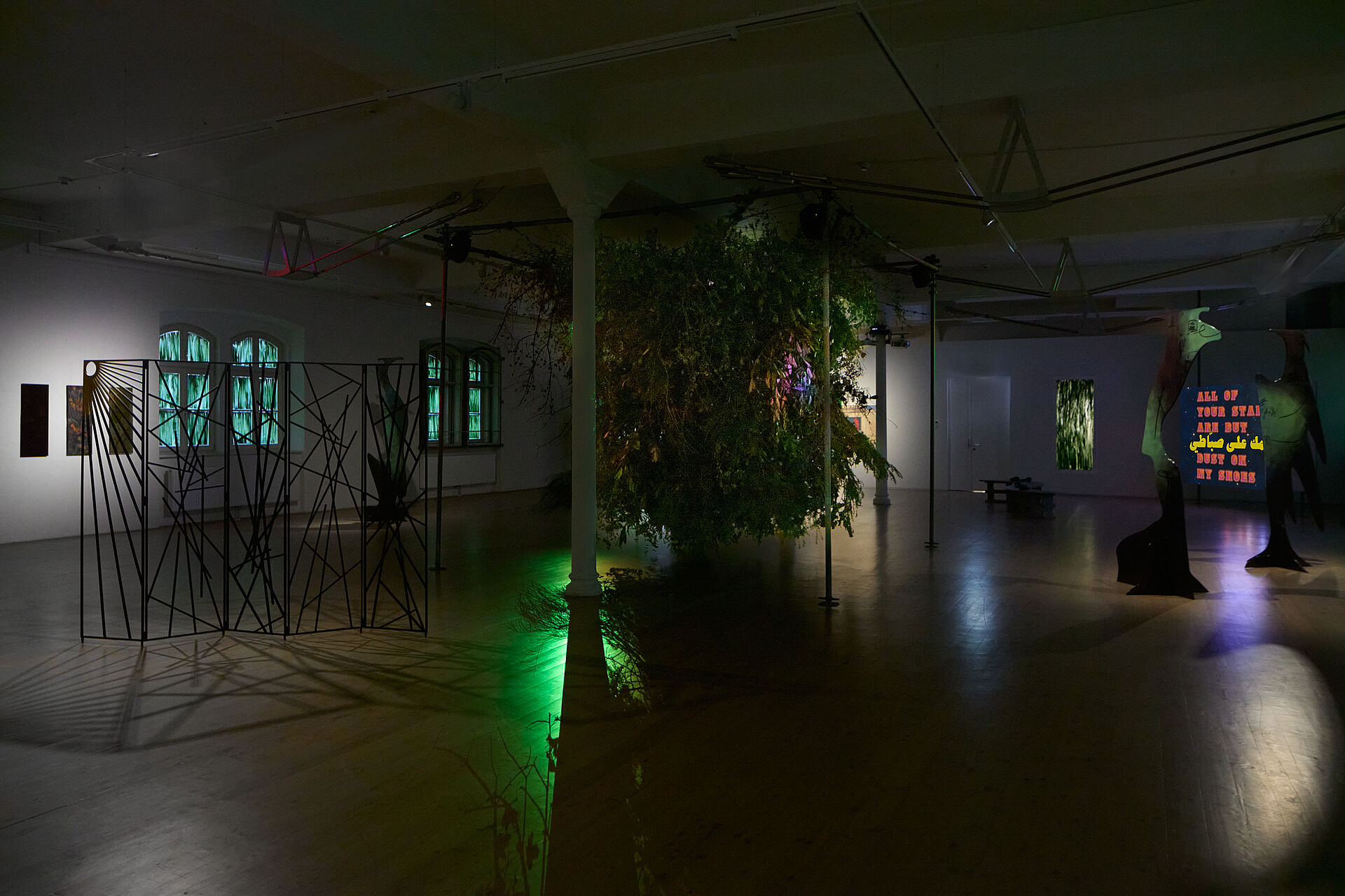 Das Ausstellungsprojekt Botanizing the Asphalt untersucht die politische Rolle des Lichts in städtischen Nachträumen anhand von drei thematischen Motiven, die sich darin überschneiden: Protest, Energie und Botanisieren. In Erkundung der Materialität der Nacht und ihrer sensorischen, normativen und atmosphärischen Aufladung wird das Potenzial des Nächtlichen als gemeinschaftlicher Begegnungsraum angesichts wachsender sozialer, ökologischer und politischer Spannungen herausgearbeitet. Der Name der Ausstellung ist Walter Benjamins „auf dem Asphalt botanisieren gehen“ entlehnt, einem Satzteil in Referenz zu Baudelaire (1938), mit dem er den Habitus des Flaneurs oder der Flaneuse in einer Analogie zu Natur beschreibt, während er/sie sich durch die Straßen schlendert. Beim Betreten der Ausstellung fühlen sich die Besucher*innen wie in eine von Grünpflanzen überwucherte Stadtlandschaft versetzt: mit ihren traumhaften Meditationen über Widerstand, Erinnerung, Identität und Ort und lädt die Schau dazu ein, tiefer in kollektive Vorstellungen über das Nächtliche einzutauchen.