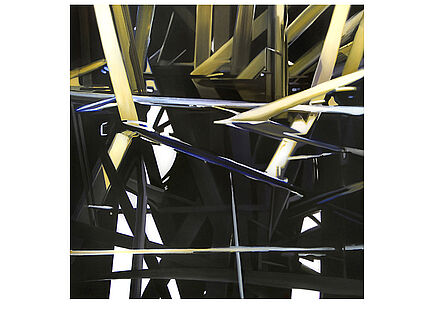Die Lücken – man könnte auch sagen die Leerstellen – zwischen den intakten Halmen und den geknickten Rohren geben den Blick auf den sie sozusagen tragenden leeren Raum im Hintergrund frei. Sichtbar wird die Vermischung des weiten Himmels mit den Elementen des Dramas, der Stille mit dem "Gefechtslärm" und den Kollisionen der Protagonisten.