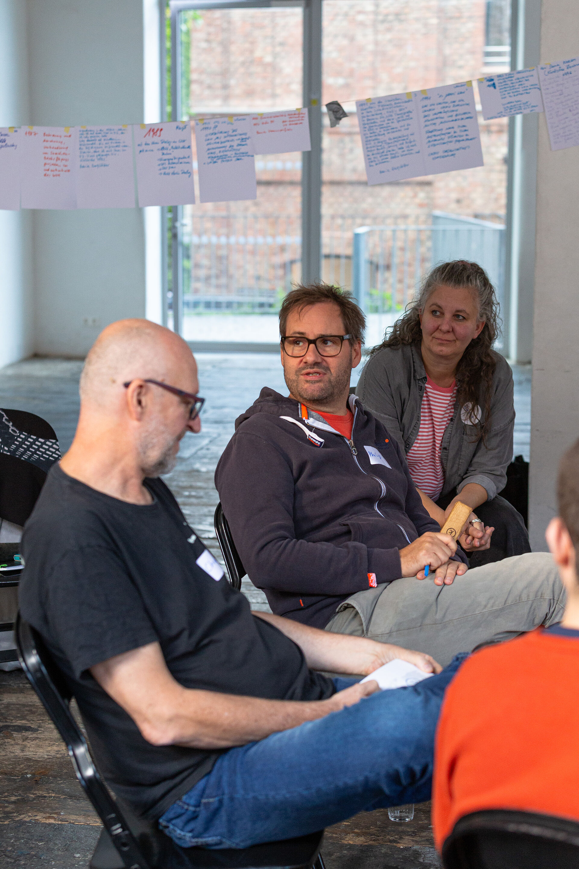 Margit Wolfsberger schildert ihren Eindruck von der Historienarbeit am 22.9.2025: „Bei der Historienarbeit ging es darum, die unterschiedlichen persönlichen Geschichten mit dem WUK zu teilen. Mir hat es gefallen, mich selbst zu erinnern und – mehr noch – allen anderen zuzuhören. Die vielfältigen Erinnerungen aus unterschiedlichen Blickwinkeln auf die WUK-Geschichte bringen Erkenntnisse, die für die Zukunft des WUK wichtig sind.“